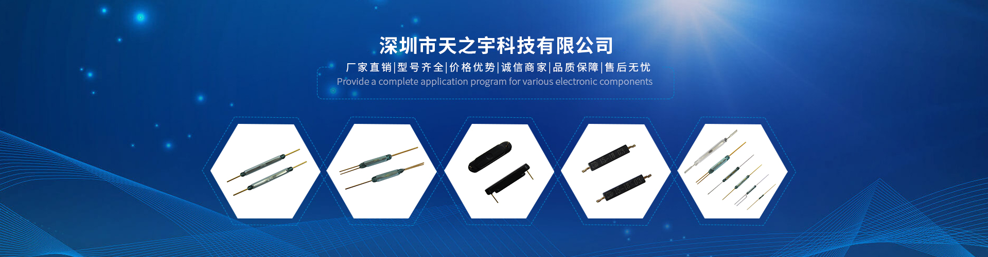 深圳市天之宇科技有限公司是集科研、制造、銷售、服務于一體的新型科技企業,主要產品以干簧管為主,經營各品牌OKI MKA HAMLIN STANDEX COTO SRC等進口品牌,又以干簧管衍生產品為輔,生產主要有液位傳感器(又稱液位控制器、液位開關,浮球開關,浮子開關等)、流量傳感器(又稱水控流量計、水流傳感器、霍爾流量傳感器、流量傳感器、流量變送器、脈沖式水流傳感器)、接近傳感器(又稱接近開關,電磁開關)、流量開關(另稱流量開關、水流開關、活塞式水流開關、擋板式水流開關、翻板式水流開關、重力式水流開關、磁力式水流開關、不銹鋼水流開關、黃銅水流開關、水流量開關、流量控制開關)、磁控開關(又稱門磁開關,窗磁開關等)等電子元器件等。