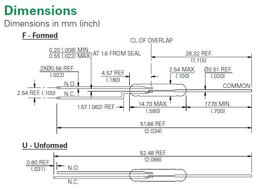1,剪切或彎曲干簧管的引線腳時必須極度小心,以免施加不適當的應力而使玻璃-金屬密封受到損毀。適當的夾緊工具是必須使用的。