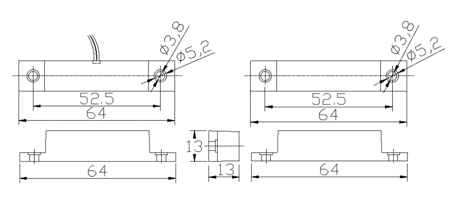 4)、在安裝過程中,表面貼裝時干簧管的觸點位置與磁鐵的磁力線最高點一定要平行安裝;但在嵌入式暗裝時,磁鐵和干簧管兩部份要相向平行在一條線上,這樣才可以取得最佳的感應距離。且兩部份最好無間隙安裝,間距越小越好,最大間隙不應超過5mm(卷簾門除外)。如果錯位安裝將導致啟動感應距離的縮短,甚至感應不到任何信號的時候,就會導至開關(guān)失靈。