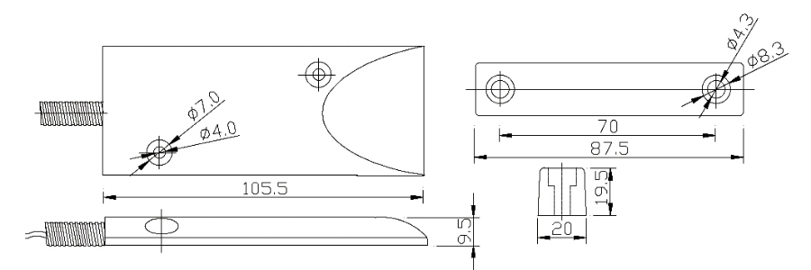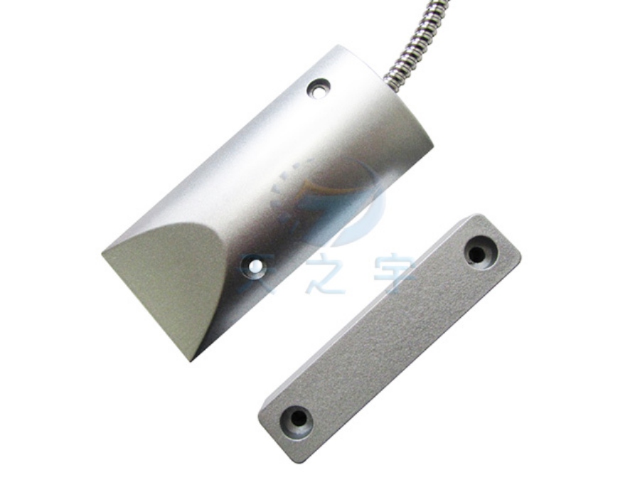2)、門磁開關、窗磁開關一般安裝在門/窗的頂部不易被接觸的地方,磁鐵部份安裝在移動的門或者窗上,開關部分安裝在固定的門/窗的框架上。但下裝式卷簾門磁開關部份最好埋在地下,磁鐵部份安裝在可移動的卷簾門的下部邊緣,可配支架調節啟動感應距離。
